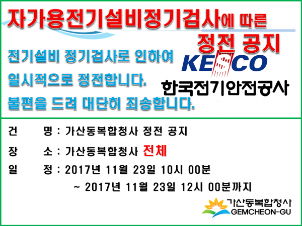 공지사항 프로그램 안내 이야기로 만나는 우리동네 영상으로 만나는 우리동네 미디어로 만나는 우리동네 사회복지사가 소개하는 우리동네 공지사항 공지사항 | 자가용 전기설비 정기검사에 따른 정전 공지 2017-11-22 관련링크 본문 이전글 다음글 수정 삭제 목록 2025년 하반기 2025년 상반기 2024년 하반기 2024년 상반기 2023년 하반기 X 개인정보처리방침 금천누리종합사회복지관 개인정보취급방침 금천누리종합사회복지관(이하 “복지관”이라 함)이 취급하는 모든 개인정보는 관련법령에 근거하거나 정보주체의 동의에 의하여 수집 · 보유와 처리되고 있습니다. 복지관 개인정보처리방침은 「개인정보 보호법」 에 근거를 두고 있으며, 이러한 법령의 규정에 따라 수집 · 보유와 처리하는 개인정보를 공공업무의 적절한 수행과 국민의 권익을 보호하기 위해 적법하고 적정하게 취급할 것입니다. 또한, 복지관은 관련 법령에서 규정한 바에 따라 보유하고 있는 개인정보에 대한 열람청구권과 정정청구권 등 여러분의 권익을 존중하며, 이와 관련한 고충을 신속하고 원활하게 처리할 수 있도록 하기 위하여 다음과 같이 개인정보처리방침을 수립 · 공개합니다. 제1조(개인정보의 처리목적) 복지관은 다음의 목적을 위하여 개인정보를 처리합니다. 처리하고 있는 개인정보는 다음의 목적 이외의 용도로는 이용되지 않으며, 이용목적이 변경될 경우에는 개인정보보호법 제18조에 따라 별도의 동의를 받는 등 필요한 조치를 이행할 예정입니다. 1. 자원봉사 신청 및 자원봉사자 관리 자원봉사 의사 확인, 봉사활동 실시를 위한 자원봉사자의 교육, 사회복지봉사활동인증관리시스템(VMS) 실적입력, 배치신청, 증명서 발급, 소식지 발송, 만 14세 미만 아동의 개인정보 수집 이용 시 법정대리인의 동의여부 확인, 각종 고지·통지, 고충처리, 통계자료 작성 등을 목적으로 개인정보를 처리합니다. 2. 후원 신청 및 후원자 관리 후원과 관련된 기본적인 본인 식별, 기부금 출금, 기부금영수증 발급과 국세청 연말정산간소화서비스로의 정보제공, CMS 신규/해지와 출금요청을 위한 정보제공(금융결제원), 만 14세 미만 아동의 개인정보 수집 이용 시 법정대리인의 동의여부 확인, 각종 고지·통지, 고충처리, 통계자료 작성 등을 목적으로 개인정보를 처리합니다. 3. 시설대관 및 기관방문 업무 운영과 관리 등을 목적으로 개인정보를 처리합니다. 제2조(개인정보의 처리와 보유기간) ① 복지관 법령에 따른 개인정보 보유 · 이용기간 또는 정보주체로부터 개인정보를 수집 시에 동의 받은 개인정보 보유 · 이용기간 내에서 개인정보를 처리 · 보유합니다. ② 통신비밀보호법 제15조의 2(전기통신사업자의 협조의무)에 따른 통신사실 확인자료 보관 - 가입자 전기통신일시, 개시 · 종료시간, 상대방 가입자번호, 사용도수, 발신기지국 위치추적자료 : 12개월 - 컴퓨터통신, 인터넷 로그기록자료, 접속지 추적자료 : 3개월 제3조(개인정보의 제3자 제공) ① 복지관은 정보주체의 개인정보를 제1조(개인정보의 처리 목적)에서 명시한 범위 내에서만 처리하며, 정보주체의 동의, 법률의 특별한 규정 등 개인정보 보호법 제17조에 해당하는 경우에만 개인정보를 제3자에게 제공합니다. ② 복지관은 정보주체로부터 개인정보를 수집 시에 동의 받은 내용 내에서 개인정보를 제3자에게 제공합니다. 제4조(정보주체의 권리 · 의무와 행사방법) ① 정보주체는 복지관에 대해 언제든지 다음 각 호의 개인정보보호 관련 권리를 행사할 수 있습니다. 1. 개인정보 열람요구 2. 오류 등이 있을 경우 정정 요구 3. 삭제요구 4. 처리정지 요구 ② 제1항에 따른 권리 행사는 복지관에 대해 서면, 전화, 전자우편, 모사전송(FAX)등을 통하여 하실 수 있으며 복지관은 이에 대해 지체 없이 조치하겠습니다. ③ 정보주체가 개인정보의 오류 등에 대한 정정 또는 삭제를 요구한 경우에는 복지관은 정정 또는 삭제를 완료할 때까지 당해 개인정보를 이용하거나 제공하지 않습니다. ④ 제1항에 따른 권리 행사는 정보주체의 법정대리인이나 위임을 받은 자 등 대리인을 통하여 하실 수 있습니다. 이 경우 개인정보 보호법 시행규칙 별지 제11호 서식에 따른 위임장을 제출하셔야 합니다. ⑤ 정보주체는 개인정보 보호법 등 관계법령을 위반하여 복지관이 처리하고 있는 정보주체 본인이나 타인의 개인정보와 사생활을 침해하여서는 아니됩니다. 제5조(처리하는 개인정보 항목) ① 복지관은 다음의 개인정보 항목을 처리하고 있습니다. * 필수정보: 이름, 생년월일, 연락처, 주소, 소속, 후원금액, 후원계좌 ② 인터넷 서비스 이용과정에서 아래 개인정보 항목이 자동으로 생성되어 수집될 수 있습니다. - IP주소, 쿠키, MAC주소, 서비스 이용기록, 방문기록, 불량 이용기록 등 제6조(개인정보의 파기) ① 복지관은 개인정보 보유기간의 경과, 처리목적 달성 등 개인정보가 불필요하게 되었을 때에는 지체 없이 해당 개인정보를 파기합니다. 제7조(개인정보의 안전성 확보조치) 복지관은 개인정보의 안전성 확보를 위해 다음과 같은 조치를 취하고 있습니다. 1. 관리적 조치 : 보안서버(SSL) 운