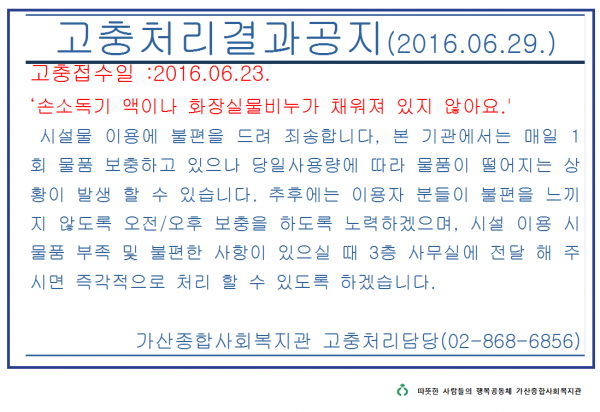 공지사항 프로그램 안내 이야기로 만나는 우리동네 영상으로 만나는 우리동네 미디어로 만나는 우리동네 사회복지사가 소개하는 우리동네 공지사항 공지사항 | 고충처리결과공지(2016.06.23) 2016-06-23 관련링크 본문 이전글 다음글 수정 삭제 목록 2025년 하반기 2025년 상반기 2024년 하반기 2024년 상반기 2023년 하반기 X 개인정보처리방침 금천누리종합사회복지관 개인정보취급방침 금천누리종합사회복지관(이하 “복지관”이라 함)이 취급하는 모든 개인정보는 관련법령에 근거하거나 정보주체의 동의에 의하여 수집 · 보유와 처리되고 있습니다. 복지관 개인정보처리방침은 「개인정보 보호법」 에 근거를 두고 있으며, 이러한 법령의 규정에 따라 수집 · 보유와 처리하는 개인정보를 공공업무의 적절한 수행과 국민의 권익을 보호하기 위해 적법하고 적정하게 취급할 것입니다. 또한, 복지관은 관련 법령에서 규정한 바에 따라 보유하고 있는 개인정보에 대한 열람청구권과 정정청구권 등 여러분의 권익을 존중하며, 이와 관련한 고충을 신속하고 원활하게 처리할 수 있도록 하기 위하여 다음과 같이 개인정보처리방침을 수립 · 공개합니다. 제1조(개인정보의 처리목적) 복지관은 다음의 목적을 위하여 개인정보를 처리합니다. 처리하고 있는 개인정보는 다음의 목적 이외의 용도로는 이용되지 않으며, 이용목적이 변경될 경우에는 개인정보보호법 제18조에 따라 별도의 동의를 받는 등 필요한 조치를 이행할 예정입니다. 1. 자원봉사 신청 및 자원봉사자 관리 자원봉사 의사 확인, 봉사활동 실시를 위한 자원봉사자의 교육, 사회복지봉사활동인증관리시스템(VMS) 실적입력, 배치신청, 증명서 발급, 소식지 발송, 만 14세 미만 아동의 개인정보 수집 이용 시 법정대리인의 동의여부 확인, 각종 고지·통지, 고충처리, 통계자료 작성 등을 목적으로 개인정보를 처리합니다. 2. 후원 신청 및 후원자 관리 후원과 관련된 기본적인 본인 식별, 기부금 출금, 기부금영수증 발급과 국세청 연말정산간소화서비스로의 정보제공, CMS 신규/해지와 출금요청을 위한 정보제공(금융결제원), 만 14세 미만 아동의 개인정보 수집 이용 시 법정대리인의 동의여부 확인, 각종 고지·통지, 고충처리, 통계자료 작성 등을 목적으로 개인정보를 처리합니다. 3. 시설대관 및 기관방문 업무 운영과 관리 등을 목적으로 개인정보를 처리합니다. 제2조(개인정보의 처리와 보유기간) ① 복지관 법령에 따른 개인정보 보유 · 이용기간 또는 정보주체로부터 개인정보를 수집 시에 동의 받은 개인정보 보유 · 이용기간 내에서 개인정보를 처리 · 보유합니다. ② 통신비밀보호법 제15조의 2(전기통신사업자의 협조의무)에 따른 통신사실 확인자료 보관 - 가입자 전기통신일시, 개시 · 종료시간, 상대방 가입자번호, 사용도수, 발신기지국 위치추적자료 : 12개월 - 컴퓨터통신, 인터넷 로그기록자료, 접속지 추적자료 : 3개월 제3조(개인정보의 제3자 제공) ① 복지관은 정보주체의 개인정보를 제1조(개인정보의 처리 목적)에서 명시한 범위 내에서만 처리하며, 정보주체의 동의, 법률의 특별한 규정 등 개인정보 보호법 제17조에 해당하는 경우에만 개인정보를 제3자에게 제공합니다. ② 복지관은 정보주체로부터 개인정보를 수집 시에 동의 받은 내용 내에서 개인정보를 제3자에게 제공합니다. 제4조(정보주체의 권리 · 의무와 행사방법) ① 정보주체는 복지관에 대해 언제든지 다음 각 호의 개인정보보호 관련 권리를 행사할 수 있습니다. 1. 개인정보 열람요구 2. 오류 등이 있을 경우 정정 요구 3. 삭제요구 4. 처리정지 요구 ② 제1항에 따른 권리 행사는 복지관에 대해 서면, 전화, 전자우편, 모사전송(FAX)등을 통하여 하실 수 있으며 복지관은 이에 대해 지체 없이 조치하겠습니다. ③ 정보주체가 개인정보의 오류 등에 대한 정정 또는 삭제를 요구한 경우에는 복지관은 정정 또는 삭제를 완료할 때까지 당해 개인정보를 이용하거나 제공하지 않습니다. ④ 제1항에 따른 권리 행사는 정보주체의 법정대리인이나 위임을 받은 자 등 대리인을 통하여 하실 수 있습니다. 이 경우 개인정보 보호법 시행규칙 별지 제11호 서식에 따른 위임장을 제출하셔야 합니다. ⑤ 정보주체는 개인정보 보호법 등 관계법령을 위반하여 복지관이 처리하고 있는 정보주체 본인이나 타인의 개인정보와 사생활을 침해하여서는 아니됩니다. 제5조(처리하는 개인정보 항목) ① 복지관은 다음의 개인정보 항목을 처리하고 있습니다. * 필수정보: 이름, 생년월일, 연락처, 주소, 소속, 후원금액, 후원계좌 ② 인터넷 서비스 이용과정에서 아래 개인정보 항목이 자동으로 생성되어 수집될 수 있습니다. - IP주소, 쿠키, MAC주소, 서비스 이용기록, 방문기록, 불량 이용기록 등 제6조(개인정보의 파기) ① 복지관은 개인정보 보유기간의 경과, 처리목적 달성 등 개인정보가 불필요하게 되었을 때에는 지체 없이 해당 개인정보를 파기합니다. 제7조(개인정보의 안전성 확보조치) 복지관은 개인정보의 안전성 확보를 위해 다음과 같은 조치를 취하고 있습니다. 1. 관리적 조치 : 보안서버(SSL) 운영, 내부관리계획