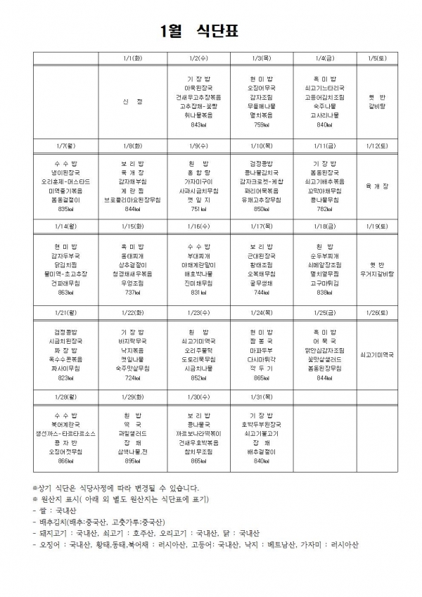공지사항 프로그램 안내 이야기로 만나는 우리동네 영상으로 만나는 우리동네 미디어로 만나는 우리동네 사회복지사가 소개하는 우리동네 공지사항 식단표 | 1월 식단표 2019-01-04 관련링크 본문 이전글 다음글 수정 삭제 목록 2025년 하반기 2025년 상반기 2024년 하반기 2024년 상반기 2023년 하반기 X 개인정보처리방침 금천누리종합사회복지관 개인정보취급방침 금천누리종합사회복지관(이하 “복지관”이라 함)이 취급하는 모든 개인정보는 관련법령에 근거하거나 정보주체의 동의에 의하여 수집 · 보유와 처리되고 있습니다. 복지관 개인정보처리방침은 「개인정보 보호법」 에 근거를 두고 있으며, 이러한 법령의 규정에 따라 수집 · 보유와 처리하는 개인정보를 공공업무의 적절한 수행과 국민의 권익을 보호하기 위해 적법하고 적정하게 취급할 것입니다. 또한, 복지관은 관련 법령에서 규정한 바에 따라 보유하고 있는 개인정보에 대한 열람청구권과 정정청구권 등 여러분의 권익을 존중하며, 이와 관련한 고충을 신속하고 원활하게 처리할 수 있도록 하기 위하여 다음과 같이 개인정보처리방침을 수립 · 공개합니다. 제1조(개인정보의 처리목적) 복지관은 다음의 목적을 위하여 개인정보를 처리합니다. 처리하고 있는 개인정보는 다음의 목적 이외의 용도로는 이용되지 않으며, 이용목적이 변경될 경우에는 개인정보보호법 제18조에 따라 별도의 동의를 받는 등 필요한 조치를 이행할 예정입니다. 1. 자원봉사 신청 및 자원봉사자 관리 자원봉사 의사 확인, 봉사활동 실시를 위한 자원봉사자의 교육, 사회복지봉사활동인증관리시스템(VMS) 실적입력, 배치신청, 증명서 발급, 소식지 발송, 만 14세 미만 아동의 개인정보 수집 이용 시 법정대리인의 동의여부 확인, 각종 고지·통지, 고충처리, 통계자료 작성 등을 목적으로 개인정보를 처리합니다. 2. 후원 신청 및 후원자 관리 후원과 관련된 기본적인 본인 식별, 기부금 출금, 기부금영수증 발급과 국세청 연말정산간소화서비스로의 정보제공, CMS 신규/해지와 출금요청을 위한 정보제공(금융결제원), 만 14세 미만 아동의 개인정보 수집 이용 시 법정대리인의 동의여부 확인, 각종 고지·통지, 고충처리, 통계자료 작성 등을 목적으로 개인정보를 처리합니다. 3. 시설대관 및 기관방문 업무 운영과 관리 등을 목적으로 개인정보를 처리합니다. 제2조(개인정보의 처리와 보유기간) ① 복지관 법령에 따른 개인정보 보유 · 이용기간 또는 정보주체로부터 개인정보를 수집 시에 동의 받은 개인정보 보유 · 이용기간 내에서 개인정보를 처리 · 보유합니다. ② 통신비밀보호법 제15조의 2(전기통신사업자의 협조의무)에 따른 통신사실 확인자료 보관 - 가입자 전기통신일시, 개시 · 종료시간, 상대방 가입자번호, 사용도수, 발신기지국 위치추적자료 : 12개월 - 컴퓨터통신, 인터넷 로그기록자료, 접속지 추적자료 : 3개월 제3조(개인정보의 제3자 제공) ① 복지관은 정보주체의 개인정보를 제1조(개인정보의 처리 목적)에서 명시한 범위 내에서만 처리하며, 정보주체의 동의, 법률의 특별한 규정 등 개인정보 보호법 제17조에 해당하는 경우에만 개인정보를 제3자에게 제공합니다. ② 복지관은 정보주체로부터 개인정보를 수집 시에 동의 받은 내용 내에서 개인정보를 제3자에게 제공합니다. 제4조(정보주체의 권리 · 의무와 행사방법) ① 정보주체는 복지관에 대해 언제든지 다음 각 호의 개인정보보호 관련 권리를 행사할 수 있습니다. 1. 개인정보 열람요구 2. 오류 등이 있을 경우 정정 요구 3. 삭제요구 4. 처리정지 요구 ② 제1항에 따른 권리 행사는 복지관에 대해 서면, 전화, 전자우편, 모사전송(FAX)등을 통하여 하실 수 있으며 복지관은 이에 대해 지체 없이 조치하겠습니다. ③ 정보주체가 개인정보의 오류 등에 대한 정정 또는 삭제를 요구한 경우에는 복지관은 정정 또는 삭제를 완료할 때까지 당해 개인정보를 이용하거나 제공하지 않습니다. ④ 제1항에 따른 권리 행사는 정보주체의 법정대리인이나 위임을 받은 자 등 대리인을 통하여 하실 수 있습니다. 이 경우 개인정보 보호법 시행규칙 별지 제11호 서식에 따른 위임장을 제출하셔야 합니다. ⑤ 정보주체는 개인정보 보호법 등 관계법령을 위반하여 복지관이 처리하고 있는 정보주체 본인이나 타인의 개인정보와 사생활을 침해하여서는 아니됩니다. 제5조(처리하는 개인정보 항목) ① 복지관은 다음의 개인정보 항목을 처리하고 있습니다. * 필수정보: 이름, 생년월일, 연락처, 주소, 소속, 후원금액, 후원계좌 ② 인터넷 서비스 이용과정에서 아래 개인정보 항목이 자동으로 생성되어 수집될 수 있습니다. - IP주소, 쿠키, MAC주소, 서비스 이용기록, 방문기록, 불량 이용기록 등 제6조(개인정보의 파기) ① 복지관은 개인정보 보유기간의 경과, 처리목적 달성 등 개인정보가 불필요하게 되었을 때에는 지체 없이 해당 개인정보를 파기합니다. 제7조(개인정보의 안전성 확보조치) 복지관은 개인정보의 안전성 확보를 위해 다음과 같은 조치를 취하고 있습니다. 1. 관리적 조치 : 보안서버(SSL) 운영, 내부관리계획 수립 · 시행, 정기