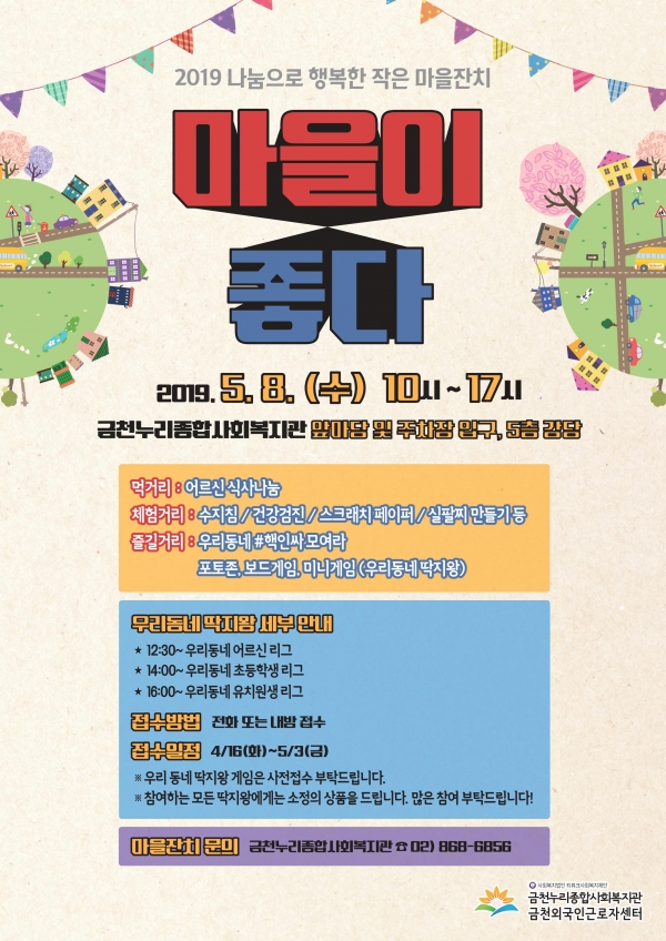 올해 금천누리복지관 마을잔치에 많은 관심과 참여 부탁드립니다.