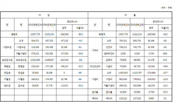 예산 공시 | 2016년 가산종합사회복지관 예산보고 2015-12-30 관련링크 본문 2015년 한해동안 많은 관심과 성원에 해주신 지역주민에게 감사드립니다. 2016년간 지역주민과 함께하기 위해 노력한 저희 임직원 모두 살기좋은 복지마을을 만들기 위해 2016년에도 최선을 다하겠습니다. - 2016년 가산종합사회복지관 예산서를 첨부하오니 지역주민의 많은 관심 부탁드립니다. 이전글 다음글 수정 삭제 목록