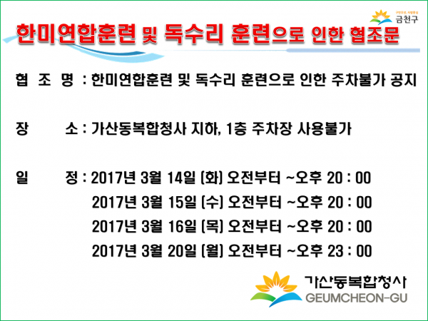 공지사항 프로그램 안내 이야기로 만나는 우리동네 영상으로 만나는 우리동네 미디어로 만나는 우리동네 사회복지사가 소개하는 우리동네 공지사항 공지사항 | 에비군 동원훈련으로 인한 주차불가 공지 2017-03-08 관련링크 본문 이전글 다음글 수정 삭제 목록 2025년 하반기 2025년 상반기 2024년 하반기 2024년 상반기 2023년 하반기 X 개인정보처리방침 금천누리종합사회복지관 개인정보취급방침 금천누리종합사회복지관(이하 “복지관”이라 함)이 취급하는 모든 개인정보는 관련법령에 근거하거나 정보주체의 동의에 의하여 수집 · 보유와 처리되고 있습니다. 복지관 개인정보처리방침은 「개인정보 보호법」 에 근거를 두고 있으며, 이러한 법령의 규정에 따라 수집 · 보유와 처리하는 개인정보를 공공업무의 적절한 수행과 국민의 권익을 보호하기 위해 적법하고 적정하게 취급할 것입니다. 또한, 복지관은 관련 법령에서 규정한 바에 따라 보유하고 있는 개인정보에 대한 열람청구권과 정정청구권 등 여러분의 권익을 존중하며, 이와 관련한 고충을 신속하고 원활하게 처리할 수 있도록 하기 위하여 다음과 같이 개인정보처리방침을 수립 · 공개합니다. 제1조(개인정보의 처리목적) 복지관은 다음의 목적을 위하여 개인정보를 처리합니다. 처리하고 있는 개인정보는 다음의 목적 이외의 용도로는 이용되지 않으며, 이용목적이 변경될 경우에는 개인정보보호법 제18조에 따라 별도의 동의를 받는 등 필요한 조치를 이행할 예정입니다. 1. 자원봉사 신청 및 자원봉사자 관리 자원봉사 의사 확인, 봉사활동 실시를 위한 자원봉사자의 교육, 사회복지봉사활동인증관리시스템(VMS) 실적입력, 배치신청, 증명서 발급, 소식지 발송, 만 14세 미만 아동의 개인정보 수집 이용 시 법정대리인의 동의여부 확인, 각종 고지·통지, 고충처리, 통계자료 작성 등을 목적으로 개인정보를 처리합니다. 2. 후원 신청 및 후원자 관리 후원과 관련된 기본적인 본인 식별, 기부금 출금, 기부금영수증 발급과 국세청 연말정산간소화서비스로의 정보제공, CMS 신규/해지와 출금요청을 위한 정보제공(금융결제원), 만 14세 미만 아동의 개인정보 수집 이용 시 법정대리인의 동의여부 확인, 각종 고지·통지, 고충처리, 통계자료 작성 등을 목적으로 개인정보를 처리합니다. 3. 시설대관 및 기관방문 업무 운영과 관리 등을 목적으로 개인정보를 처리합니다. 제2조(개인정보의 처리와 보유기간) ① 복지관 법령에 따른 개인정보 보유 · 이용기간 또는 정보주체로부터 개인정보를 수집 시에 동의 받은 개인정보 보유 · 이용기간 내에서 개인정보를 처리 · 보유합니다. ② 통신비밀보호법 제15조의 2(전기통신사업자의 협조의무)에 따른 통신사실 확인자료 보관 - 가입자 전기통신일시, 개시 · 종료시간, 상대방 가입자번호, 사용도수, 발신기지국 위치추적자료 : 12개월 - 컴퓨터통신, 인터넷 로그기록자료, 접속지 추적자료 : 3개월 제3조(개인정보의 제3자 제공) ① 복지관은 정보주체의 개인정보를 제1조(개인정보의 처리 목적)에서 명시한 범위 내에서만 처리하며, 정보주체의 동의, 법률의 특별한 규정 등 개인정보 보호법 제17조에 해당하는 경우에만 개인정보를 제3자에게 제공합니다. ② 복지관은 정보주체로부터 개인정보를 수집 시에 동의 받은 내용 내에서 개인정보를 제3자에게 제공합니다. 제4조(정보주체의 권리 · 의무와 행사방법) ① 정보주체는 복지관에 대해 언제든지 다음 각 호의 개인정보보호 관련 권리를 행사할 수 있습니다. 1. 개인정보 열람요구 2. 오류 등이 있을 경우 정정 요구 3. 삭제요구 4. 처리정지 요구 ② 제1항에 따른 권리 행사는 복지관에 대해 서면, 전화, 전자우편, 모사전송(FAX)등을 통하여 하실 수 있으며 복지관은 이에 대해 지체 없이 조치하겠습니다. ③ 정보주체가 개인정보의 오류 등에 대한 정정 또는 삭제를 요구한 경우에는 복지관은 정정 또는 삭제를 완료할 때까지 당해 개인정보를 이용하거나 제공하지 않습니다. ④ 제1항에 따른 권리 행사는 정보주체의 법정대리인이나 위임을 받은 자 등 대리인을 통하여 하실 수 있습니다. 이 경우 개인정보 보호법 시행규칙 별지 제11호 서식에 따른 위임장을 제출하셔야 합니다. ⑤ 정보주체는 개인정보 보호법 등 관계법령을 위반하여 복지관이 처리하고 있는 정보주체 본인이나 타인의 개인정보와 사생활을 침해하여서는 아니됩니다. 제5조(처리하는 개인정보 항목) ① 복지관은 다음의 개인정보 항목을 처리하고 있습니다. * 필수정보: 이름, 생년월일, 연락처, 주소, 소속, 후원금액, 후원계좌 ② 인터넷 서비스 이용과정에서 아래 개인정보 항목이 자동으로 생성되어 수집될 수 있습니다. - IP주소, 쿠키, MAC주소, 서비스 이용기록, 방문기록, 불량 이용기록 등 제6조(개인정보의 파기) ① 복지관은 개인정보 보유기간의 경과, 처리목적 달성 등 개인정보가 불필요하게 되었을 때에는 지체 없이 해당 개인정보를 파기합니다. 제7조(개인정보의 안전성 확보조치) 복지관은 개인정보의 안전성 확보를 위해 다음과 같은 조치를 취하고 있습니다. 1. 관리적 조치 : 보안서버(SSL) 운영,
