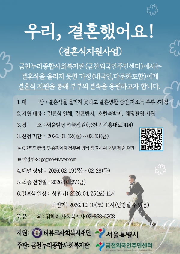 라. 지 원 : 사전 웨딩촬영 지원 및 결혼예식, 부부 예물, 국내 숙박권 지원 등