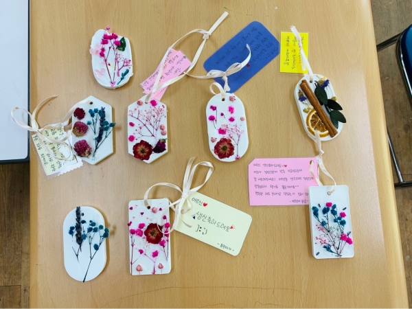 그리고 석고방향제와 함께 드릴 작은 손편지도 정성스레 작성해봅니다.