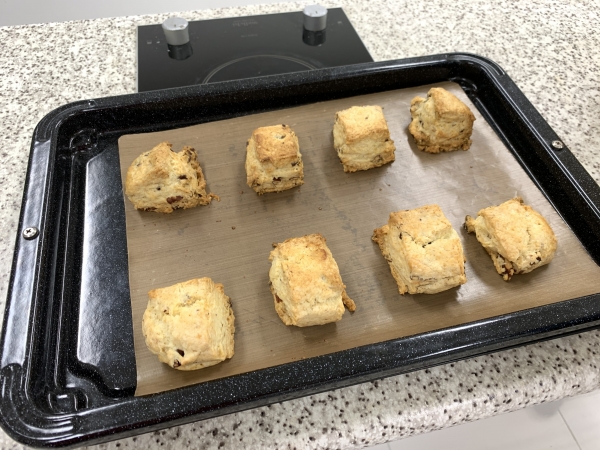 색깔이 노릇하게 구워지면 스콘 완성! 강사님이 준비한 딸기잼을 곁들어서 자신이 만든 스콘을 맛봅니다.