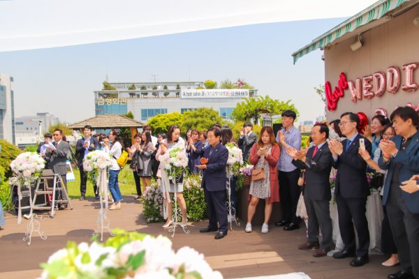 꽃이 가득한 새울빌딩 옥상공원에 각 가정의 가족, 친척, 지인분들이 축하하러 와주셨습니다.