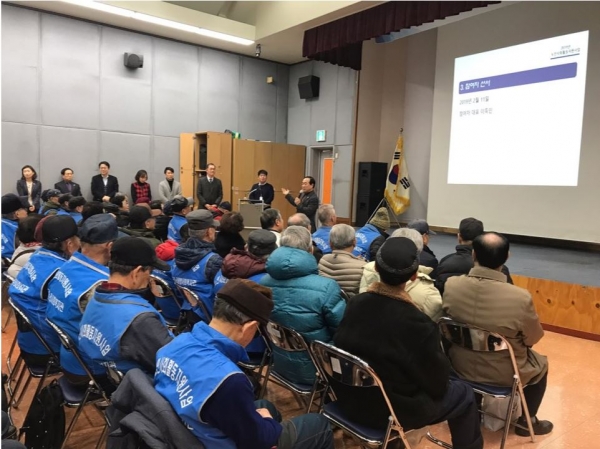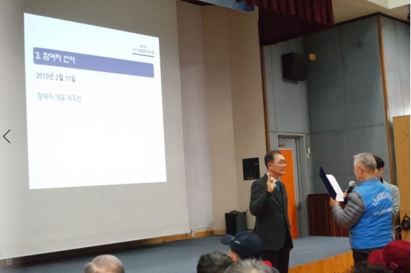 2019년 노인사회활동지원사업 (노노케어, 지역아동센터도우미, 복지시설지킴이,따릉이수호대) 발대식 및 활동교육을 진행하였습니다.