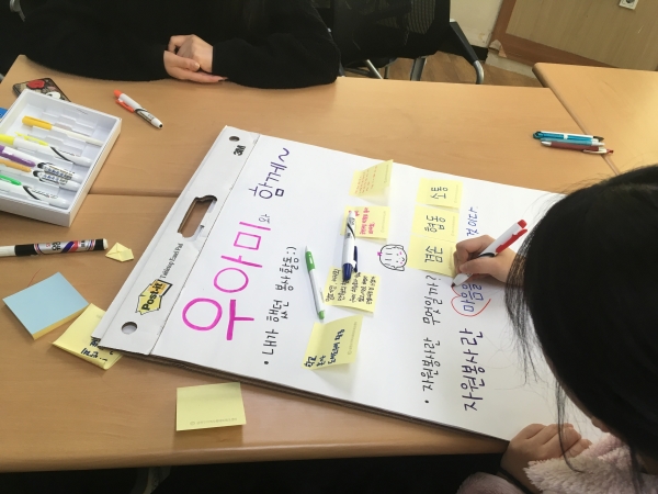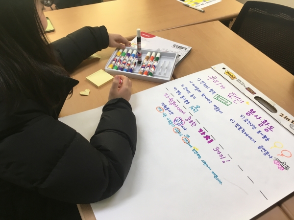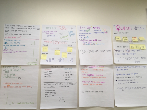 조별로 이루어 각자의 봉사활동에 대한 경험과 생각을 나누고