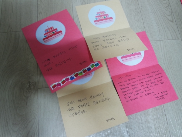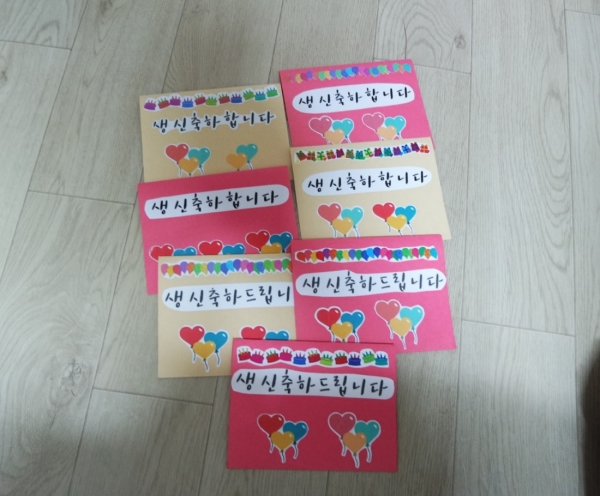 지난 18일 금천누리종합사회복지관에서 사회복지 현장실습을 진행하고 있는 실습생 선생님들과 ‘발견하는 생신잔치’ 첫 회기를 진행하였습니다. 실습생 선생님들께서는 생신잔치 진행을 위해 직접 생일 축하 가랜드를 제작하였고, 어르신께서 평소 다니시는 병원에 방문하여 감사카드 작성을 부탁하였습니다. 또한 실습생 선생님의 아버님께서 서예학원 원장님이셔서 가족의 힘(?)으로 어르신께 직접 붓글씨로 생일 축하 글을 전달하시기도 하였습니다. 그 외에도 어르신 집 근처 음식점 사장님께서는 밑반찬 6~7개 종류를 만드셔서 전달해주시고, 가산동주민센터 방문간호사 선생님께서도 직접 생신잔치 참여하지는 못 하지만 축하하는 마음을 담아 감사카드를 작성해주셨습니다.