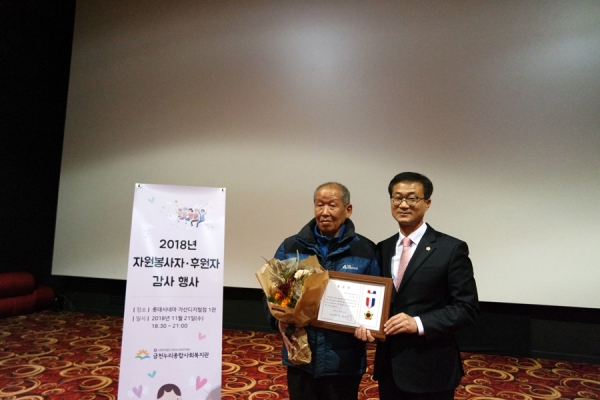 자원봉사자 윤종태님께서 티뷰크사회복지재단 이사장 표창