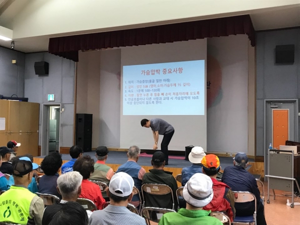 노인사회활동지원사업 활둉교육 심폐소생술을 진행하였습니다.
