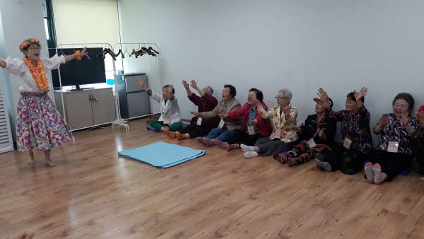 특별레크레이션으로 훌라춤과 손유희시간을 갖고, 모두가 즐길 수 있는 윷놀이를 함께 하면서