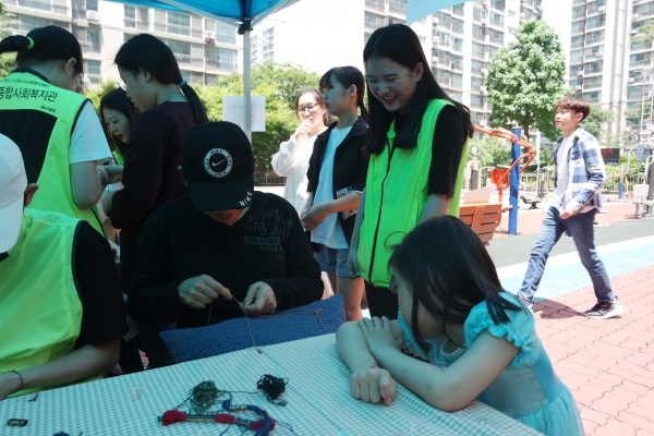 동네 꼬마 아이들을 위한 실팔찌 만들기, 타투스티커 체험부스에는