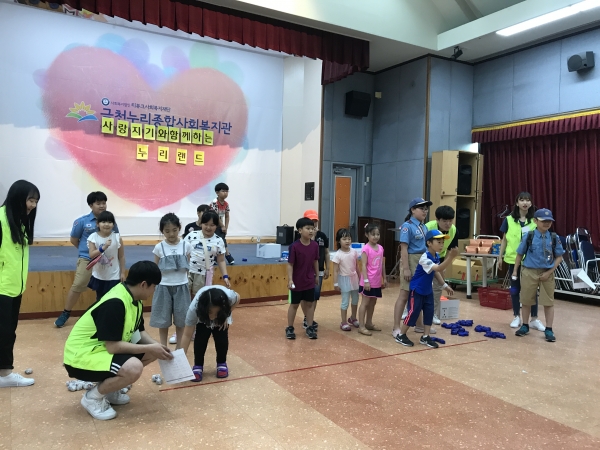 금일 대학생자원봉사동아리 활동 지원 사업의 첫 결과물인 누리랜드를 즐겁게 맞췄습니다.