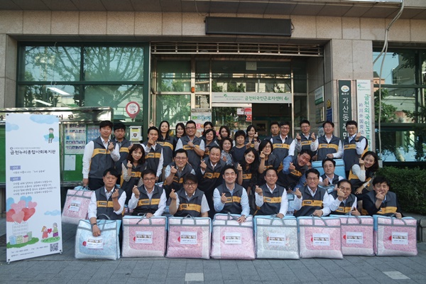 오늘 이러한 착한기업 KB증권(영업부, 독산지점, 화곡지점, 구로지점, 광명지점) 임직원 33명이 본 복지관과 연계하여 금천구 관 내 저소득 32가구에 여름이불(이불, 패드)를 지원하였습니다.