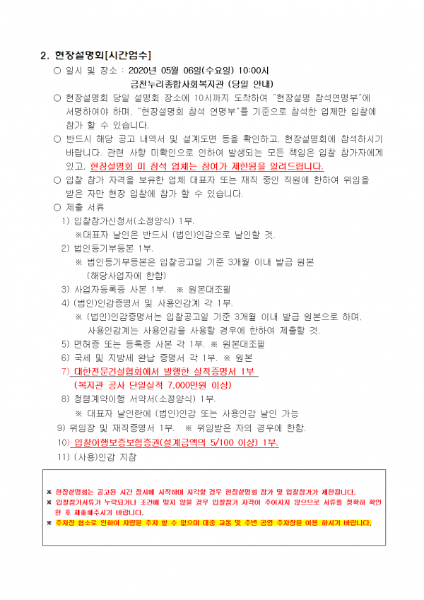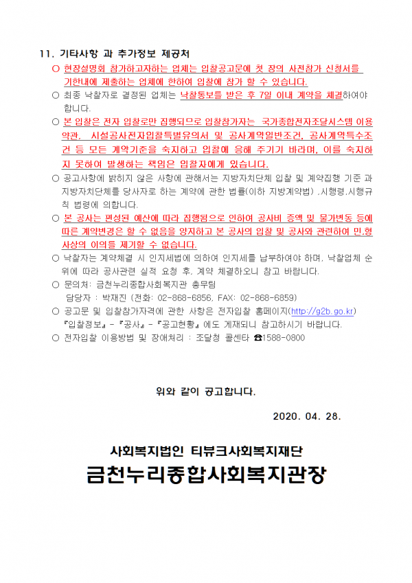 2. 입찰 게시 일자 : 2020년 04월 28일 화요일