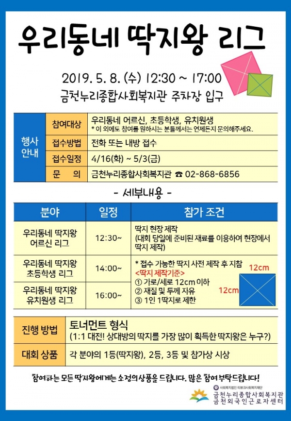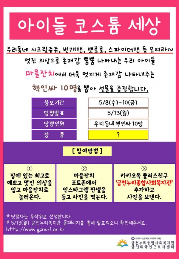 - 문의 : 금천누리종합사회복지관(☎02-868-6856)