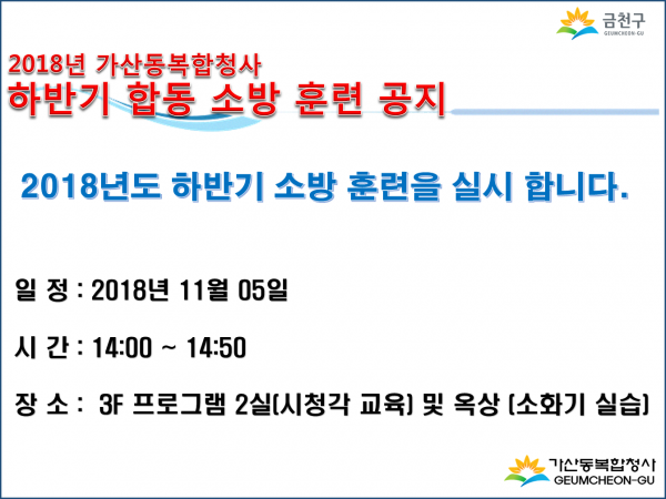 공지사항 프로그램 안내 이야기로 만나는 우리동네 영상으로 만나는 우리동네 미디어로 만나는 우리동네 사회복지사가 소개하는 우리동네 공지사항 공지사항 | 2018년하반기소방훈련공지 2018-11-02 관련링크 본문 이전글 다음글 수정 삭제 목록 2025년 하반기 2025년 상반기 2024년 하반기 2024년 상반기 2023년 하반기 X 개인정보처리방침 금천누리종합사회복지관 개인정보취급방침 금천누리종합사회복지관(이하 “복지관”이라 함)이 취급하는 모든 개인정보는 관련법령에 근거하거나 정보주체의 동의에 의하여 수집 · 보유와 처리되고 있습니다. 복지관 개인정보처리방침은 「개인정보 보호법」 에 근거를 두고 있으며, 이러한 법령의 규정에 따라 수집 · 보유와 처리하는 개인정보를 공공업무의 적절한 수행과 국민의 권익을 보호하기 위해 적법하고 적정하게 취급할 것입니다. 또한, 복지관은 관련 법령에서 규정한 바에 따라 보유하고 있는 개인정보에 대한 열람청구권과 정정청구권 등 여러분의 권익을 존중하며, 이와 관련한 고충을 신속하고 원활하게 처리할 수 있도록 하기 위하여 다음과 같이 개인정보처리방침을 수립 · 공개합니다. 제1조(개인정보의 처리목적) 복지관은 다음의 목적을 위하여 개인정보를 처리합니다. 처리하고 있는 개인정보는 다음의 목적 이외의 용도로는 이용되지 않으며, 이용목적이 변경될 경우에는 개인정보보호법 제18조에 따라 별도의 동의를 받는 등 필요한 조치를 이행할 예정입니다. 1. 자원봉사 신청 및 자원봉사자 관리 자원봉사 의사 확인, 봉사활동 실시를 위한 자원봉사자의 교육, 사회복지봉사활동인증관리시스템(VMS) 실적입력, 배치신청, 증명서 발급, 소식지 발송, 만 14세 미만 아동의 개인정보 수집 이용 시 법정대리인의 동의여부 확인, 각종 고지·통지, 고충처리, 통계자료 작성 등을 목적으로 개인정보를 처리합니다. 2. 후원 신청 및 후원자 관리 후원과 관련된 기본적인 본인 식별, 기부금 출금, 기부금영수증 발급과 국세청 연말정산간소화서비스로의 정보제공, CMS 신규/해지와 출금요청을 위한 정보제공(금융결제원), 만 14세 미만 아동의 개인정보 수집 이용 시 법정대리인의 동의여부 확인, 각종 고지·통지, 고충처리, 통계자료 작성 등을 목적으로 개인정보를 처리합니다. 3. 시설대관 및 기관방문 업무 운영과 관리 등을 목적으로 개인정보를 처리합니다. 제2조(개인정보의 처리와 보유기간) ① 복지관 법령에 따른 개인정보 보유 · 이용기간 또는 정보주체로부터 개인정보를 수집 시에 동의 받은 개인정보 보유 · 이용기간 내에서 개인정보를 처리 · 보유합니다. ② 통신비밀보호법 제15조의 2(전기통신사업자의 협조의무)에 따른 통신사실 확인자료 보관 - 가입자 전기통신일시, 개시 · 종료시간, 상대방 가입자번호, 사용도수, 발신기지국 위치추적자료 : 12개월 - 컴퓨터통신, 인터넷 로그기록자료, 접속지 추적자료 : 3개월 제3조(개인정보의 제3자 제공) ① 복지관은 정보주체의 개인정보를 제1조(개인정보의 처리 목적)에서 명시한 범위 내에서만 처리하며, 정보주체의 동의, 법률의 특별한 규정 등 개인정보 보호법 제17조에 해당하는 경우에만 개인정보를 제3자에게 제공합니다. ② 복지관은 정보주체로부터 개인정보를 수집 시에 동의 받은 내용 내에서 개인정보를 제3자에게 제공합니다. 제4조(정보주체의 권리 · 의무와 행사방법) ① 정보주체는 복지관에 대해 언제든지 다음 각 호의 개인정보보호 관련 권리를 행사할 수 있습니다. 1. 개인정보 열람요구 2. 오류 등이 있을 경우 정정 요구 3. 삭제요구 4. 처리정지 요구 ② 제1항에 따른 권리 행사는 복지관에 대해 서면, 전화, 전자우편, 모사전송(FAX)등을 통하여 하실 수 있으며 복지관은 이에 대해 지체 없이 조치하겠습니다. ③ 정보주체가 개인정보의 오류 등에 대한 정정 또는 삭제를 요구한 경우에는 복지관은 정정 또는 삭제를 완료할 때까지 당해 개인정보를 이용하거나 제공하지 않습니다. ④ 제1항에 따른 권리 행사는 정보주체의 법정대리인이나 위임을 받은 자 등 대리인을 통하여 하실 수 있습니다. 이 경우 개인정보 보호법 시행규칙 별지 제11호 서식에 따른 위임장을 제출하셔야 합니다. ⑤ 정보주체는 개인정보 보호법 등 관계법령을 위반하여 복지관이 처리하고 있는 정보주체 본인이나 타인의 개인정보와 사생활을 침해하여서는 아니됩니다. 제5조(처리하는 개인정보 항목) ① 복지관은 다음의 개인정보 항목을 처리하고 있습니다. * 필수정보: 이름, 생년월일, 연락처, 주소, 소속, 후원금액, 후원계좌 ② 인터넷 서비스 이용과정에서 아래 개인정보 항목이 자동으로 생성되어 수집될 수 있습니다. - IP주소, 쿠키, MAC주소, 서비스 이용기록, 방문기록, 불량 이용기록 등 제6조(개인정보의 파기) ① 복지관은 개인정보 보유기간의 경과, 처리목적 달성 등 개인정보가 불필요하게 되었을 때에는 지체 없이 해당 개인정보를 파기합니다. 제7조(개인정보의 안전성 확보조치) 복지관은 개인정보의 안전성 확보를 위해 다음과 같은 조치를 취하고 있습니다. 1. 관리적 조치 : 보안서버(SSL) 운영, 내부관리계획 
