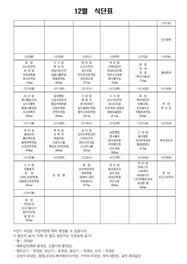 공지사항 프로그램 안내 이야기로 만나는 우리동네 영상으로 만나는 우리동네 미디어로 만나는 우리동네 사회복지사가 소개하는 우리동네 공지사항 식단표 | 12월 식단표 2018-12-03 관련링크 본문 이전글 다음글 수정 삭제 목록 2025년 하반기 2025년 상반기 2024년 하반기 2024년 상반기 2023년 하반기 X 개인정보처리방침 금천누리종합사회복지관 개인정보취급방침 금천누리종합사회복지관(이하 “복지관”이라 함)이 취급하는 모든 개인정보는 관련법령에 근거하거나 정보주체의 동의에 의하여 수집 · 보유와 처리되고 있습니다. 복지관 개인정보처리방침은 「개인정보 보호법」 에 근거를 두고 있으며, 이러한 법령의 규정에 따라 수집 · 보유와 처리하는 개인정보를 공공업무의 적절한 수행과 국민의 권익을 보호하기 위해 적법하고 적정하게 취급할 것입니다. 또한, 복지관은 관련 법령에서 규정한 바에 따라 보유하고 있는 개인정보에 대한 열람청구권과 정정청구권 등 여러분의 권익을 존중하며, 이와 관련한 고충을 신속하고 원활하게 처리할 수 있도록 하기 위하여 다음과 같이 개인정보처리방침을 수립 · 공개합니다. 제1조(개인정보의 처리목적) 복지관은 다음의 목적을 위하여 개인정보를 처리합니다. 처리하고 있는 개인정보는 다음의 목적 이외의 용도로는 이용되지 않으며, 이용목적이 변경될 경우에는 개인정보보호법 제18조에 따라 별도의 동의를 받는 등 필요한 조치를 이행할 예정입니다. 1. 자원봉사 신청 및 자원봉사자 관리 자원봉사 의사 확인, 봉사활동 실시를 위한 자원봉사자의 교육, 사회복지봉사활동인증관리시스템(VMS) 실적입력, 배치신청, 증명서 발급, 소식지 발송, 만 14세 미만 아동의 개인정보 수집 이용 시 법정대리인의 동의여부 확인, 각종 고지·통지, 고충처리, 통계자료 작성 등을 목적으로 개인정보를 처리합니다. 2. 후원 신청 및 후원자 관리 후원과 관련된 기본적인 본인 식별, 기부금 출금, 기부금영수증 발급과 국세청 연말정산간소화서비스로의 정보제공, CMS 신규/해지와 출금요청을 위한 정보제공(금융결제원), 만 14세 미만 아동의 개인정보 수집 이용 시 법정대리인의 동의여부 확인, 각종 고지·통지, 고충처리, 통계자료 작성 등을 목적으로 개인정보를 처리합니다. 3. 시설대관 및 기관방문 업무 운영과 관리 등을 목적으로 개인정보를 처리합니다. 제2조(개인정보의 처리와 보유기간) ① 복지관 법령에 따른 개인정보 보유 · 이용기간 또는 정보주체로부터 개인정보를 수집 시에 동의 받은 개인정보 보유 · 이용기간 내에서 개인정보를 처리 · 보유합니다. ② 통신비밀보호법 제15조의 2(전기통신사업자의 협조의무)에 따른 통신사실 확인자료 보관 - 가입자 전기통신일시, 개시 · 종료시간, 상대방 가입자번호, 사용도수, 발신기지국 위치추적자료 : 12개월 - 컴퓨터통신, 인터넷 로그기록자료, 접속지 추적자료 : 3개월 제3조(개인정보의 제3자 제공) ① 복지관은 정보주체의 개인정보를 제1조(개인정보의 처리 목적)에서 명시한 범위 내에서만 처리하며, 정보주체의 동의, 법률의 특별한 규정 등 개인정보 보호법 제17조에 해당하는 경우에만 개인정보를 제3자에게 제공합니다. ② 복지관은 정보주체로부터 개인정보를 수집 시에 동의 받은 내용 내에서 개인정보를 제3자에게 제공합니다. 제4조(정보주체의 권리 · 의무와 행사방법) ① 정보주체는 복지관에 대해 언제든지 다음 각 호의 개인정보보호 관련 권리를 행사할 수 있습니다. 1. 개인정보 열람요구 2. 오류 등이 있을 경우 정정 요구 3. 삭제요구 4. 처리정지 요구 ② 제1항에 따른 권리 행사는 복지관에 대해 서면, 전화, 전자우편, 모사전송(FAX)등을 통하여 하실 수 있으며 복지관은 이에 대해 지체 없이 조치하겠습니다. ③ 정보주체가 개인정보의 오류 등에 대한 정정 또는 삭제를 요구한 경우에는 복지관은 정정 또는 삭제를 완료할 때까지 당해 개인정보를 이용하거나 제공하지 않습니다. ④ 제1항에 따른 권리 행사는 정보주체의 법정대리인이나 위임을 받은 자 등 대리인을 통하여 하실 수 있습니다. 이 경우 개인정보 보호법 시행규칙 별지 제11호 서식에 따른 위임장을 제출하셔야 합니다. ⑤ 정보주체는 개인정보 보호법 등 관계법령을 위반하여 복지관이 처리하고 있는 정보주체 본인이나 타인의 개인정보와 사생활을 침해하여서는 아니됩니다. 제5조(처리하는 개인정보 항목) ① 복지관은 다음의 개인정보 항목을 처리하고 있습니다. * 필수정보: 이름, 생년월일, 연락처, 주소, 소속, 후원금액, 후원계좌 ② 인터넷 서비스 이용과정에서 아래 개인정보 항목이 자동으로 생성되어 수집될 수 있습니다. - IP주소, 쿠키, MAC주소, 서비스 이용기록, 방문기록, 불량 이용기록 등 제6조(개인정보의 파기) ① 복지관은 개인정보 보유기간의 경과, 처리목적 달성 등 개인정보가 불필요하게 되었을 때에는 지체 없이 해당 개인정보를 파기합니다. 제7조(개인정보의 안전성 확보조치) 복지관은 개인정보의 안전성 확보를 위해 다음과 같은 조치를 취하고 있습니다. 1. 관리적 조치 : 보안서버(SSL) 운영, 내부관리계획 수립 · 시행, 정