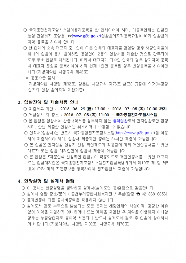 공지사항 | 2018년도 기능보강사업(건축부문) 입찰 공고 2018-06-29 첨부파일 금천누리종합사회복지관 공고 제2018-01호.hwp (23.5K) 71회 다운로드 DATE : 2018-06-00 00:00:00 관련링크 본문 이전글 다음글 수정 삭제 목록