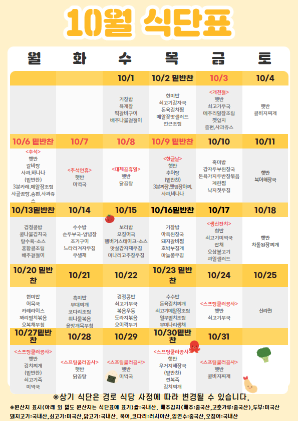 공지사항 프로그램 안내 이야기로 만나는 우리동네 영상으로 만나는 우리동네 미디어로 만나는 우리동네 사회복지사가 소개하는 우리동네 공지사항 공지사항 | 10월 식단표 2025-10-10 관련링크 본문 10월 이전글 다음글 목록 2025년 하반기 2025년 상반기 2024년 하반기 2024년 상반기 2023년 하반기 X 개인정보처리방침 금천누리종합사회복지관 개인정보취급방침 금천누리종합사회복지관(이하 “복지관”이라 함)이 취급하는 모든 개인정보는 관련법령에 근거하거나 정보주체의 동의에 의하여 수집 · 보유와 처리되고 있습니다. 복지관 개인정보처리방침은 「개인정보 보호법」 에 근거를 두고 있으며, 이러한 법령의 규정에 따라 수집 · 보유와 처리하는 개인정보를 공공업무의 적절한 수행과 국민의 권익을 보호하기 위해 적법하고 적정하게 취급할 것입니다. 또한, 복지관은 관련 법령에서 규정한 바에 따라 보유하고 있는 개인정보에 대한 열람청구권과 정정청구권 등 여러분의 권익을 존중하며, 이와 관련한 고충을 신속하고 원활하게 처리할 수 있도록 하기 위하여 다음과 같이 개인정보처리방침을 수립 · 공개합니다. 제1조(개인정보의 처리목적) 복지관은 다음의 목적을 위하여 개인정보를 처리합니다. 처리하고 있는 개인정보는 다음의 목적 이외의 용도로는 이용되지 않으며, 이용목적이 변경될 경우에는 개인정보보호법 제18조에 따라 별도의 동의를 받는 등 필요한 조치를 이행할 예정입니다. 1. 자원봉사 신청 및 자원봉사자 관리 자원봉사 의사 확인, 봉사활동 실시를 위한 자원봉사자의 교육, 사회복지봉사활동인증관리시스템(VMS) 실적입력, 배치신청, 증명서 발급, 소식지 발송, 만 14세 미만 아동의 개인정보 수집 이용 시 법정대리인의 동의여부 확인, 각종 고지·통지, 고충처리, 통계자료 작성 등을 목적으로 개인정보를 처리합니다. 2. 후원 신청 및 후원자 관리 후원과 관련된 기본적인 본인 식별, 기부금 출금, 기부금영수증 발급과 국세청 연말정산간소화서비스로의 정보제공, CMS 신규/해지와 출금요청을 위한 정보제공(금융결제원), 만 14세 미만 아동의 개인정보 수집 이용 시 법정대리인의 동의여부 확인, 각종 고지·통지, 고충처리, 통계자료 작성 등을 목적으로 개인정보를 처리합니다. 3. 시설대관 및 기관방문 업무 운영과 관리 등을 목적으로 개인정보를 처리합니다. 제2조(개인정보의 처리와 보유기간) ① 복지관 법령에 따른 개인정보 보유 · 이용기간 또는 정보주체로부터 개인정보를 수집 시에 동의 받은 개인정보 보유 · 이용기간 내에서 개인정보를 처리 · 보유합니다. ② 통신비밀보호법 제15조의 2(전기통신사업자의 협조의무)에 따른 통신사실 확인자료 보관 - 가입자 전기통신일시, 개시 · 종료시간, 상대방 가입자번호, 사용도수, 발신기지국 위치추적자료 : 12개월 - 컴퓨터통신, 인터넷 로그기록자료, 접속지 추적자료 : 3개월 제3조(개인정보의 제3자 제공) ① 복지관은 정보주체의 개인정보를 제1조(개인정보의 처리 목적)에서 명시한 범위 내에서만 처리하며, 정보주체의 동의, 법률의 특별한 규정 등 개인정보 보호법 제17조에 해당하는 경우에만 개인정보를 제3자에게 제공합니다. ② 복지관은 정보주체로부터 개인정보를 수집 시에 동의 받은 내용 내에서 개인정보를 제3자에게 제공합니다. 제4조(정보주체의 권리 · 의무와 행사방법) ① 정보주체는 복지관에 대해 언제든지 다음 각 호의 개인정보보호 관련 권리를 행사할 수 있습니다. 1. 개인정보 열람요구 2. 오류 등이 있을 경우 정정 요구 3. 삭제요구 4. 처리정지 요구 ② 제1항에 따른 권리 행사는 복지관에 대해 서면, 전화, 전자우편, 모사전송(FAX)등을 통하여 하실 수 있으며 복지관은 이에 대해 지체 없이 조치하겠습니다. ③ 정보주체가 개인정보의 오류 등에 대한 정정 또는 삭제를 요구한 경우에는 복지관은 정정 또는 삭제를 완료할 때까지 당해 개인정보를 이용하거나 제공하지 않습니다. ④ 제1항에 따른 권리 행사는 정보주체의 법정대리인이나 위임을 받은 자 등 대리인을 통하여 하실 수 있습니다. 이 경우 개인정보 보호법 시행규칙 별지 제11호 서식에 따른 위임장을 제출하셔야 합니다. ⑤ 정보주체는 개인정보 보호법 등 관계법령을 위반하여 복지관이 처리하고 있는 정보주체 본인이나 타인의 개인정보와 사생활을 침해하여서는 아니됩니다. 제5조(처리하는 개인정보 항목) ① 복지관은 다음의 개인정보 항목을 처리하고 있습니다. * 필수정보: 이름, 생년월일, 연락처, 주소, 소속, 후원금액, 후원계좌 ② 인터넷 서비스 이용과정에서 아래 개인정보 항목이 자동으로 생성되어 수집될 수 있습니다. - IP주소, 쿠키, MAC주소, 서비스 이용기록, 방문기록, 불량 이용기록 등 제6조(개인정보의 파기) ① 복지관은 개인정보 보유기간의 경과, 처리목적 달성 등 개인정보가 불필요하게 되었을 때에는 지체 없이 해당 개인정보를 파기합니다. 제7조(개인정보의 안전성 확보조치) 복지관은 개인정보의 안전성 확보를 위해 다음과 같은 조치를 취하고 있습니다. 1. 관리적 조치 : 보안서버(SSL) 운영, 내부관리계획 수립 · 시행, 정기적 