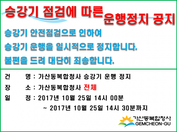 공지사항 프로그램 안내 이야기로 만나는 우리동네 영상으로 만나는 우리동네 미디어로 만나는 우리동네 사회복지사가 소개하는 우리동네 공지사항 공지사항 | 승강기 안전점검에 따른 일시 운행 정지 공지 2017-10-25 관련링크 본문 이전글 다음글 수정 삭제 목록 2025년 하반기 2025년 상반기 2024년 하반기 2024년 상반기 2023년 하반기 X 개인정보처리방침 금천누리종합사회복지관 개인정보취급방침 금천누리종합사회복지관(이하 “복지관”이라 함)이 취급하는 모든 개인정보는 관련법령에 근거하거나 정보주체의 동의에 의하여 수집 · 보유와 처리되고 있습니다. 복지관 개인정보처리방침은 「개인정보 보호법」 에 근거를 두고 있으며, 이러한 법령의 규정에 따라 수집 · 보유와 처리하는 개인정보를 공공업무의 적절한 수행과 국민의 권익을 보호하기 위해 적법하고 적정하게 취급할 것입니다. 또한, 복지관은 관련 법령에서 규정한 바에 따라 보유하고 있는 개인정보에 대한 열람청구권과 정정청구권 등 여러분의 권익을 존중하며, 이와 관련한 고충을 신속하고 원활하게 처리할 수 있도록 하기 위하여 다음과 같이 개인정보처리방침을 수립 · 공개합니다. 제1조(개인정보의 처리목적) 복지관은 다음의 목적을 위하여 개인정보를 처리합니다. 처리하고 있는 개인정보는 다음의 목적 이외의 용도로는 이용되지 않으며, 이용목적이 변경될 경우에는 개인정보보호법 제18조에 따라 별도의 동의를 받는 등 필요한 조치를 이행할 예정입니다. 1. 자원봉사 신청 및 자원봉사자 관리 자원봉사 의사 확인, 봉사활동 실시를 위한 자원봉사자의 교육, 사회복지봉사활동인증관리시스템(VMS) 실적입력, 배치신청, 증명서 발급, 소식지 발송, 만 14세 미만 아동의 개인정보 수집 이용 시 법정대리인의 동의여부 확인, 각종 고지·통지, 고충처리, 통계자료 작성 등을 목적으로 개인정보를 처리합니다. 2. 후원 신청 및 후원자 관리 후원과 관련된 기본적인 본인 식별, 기부금 출금, 기부금영수증 발급과 국세청 연말정산간소화서비스로의 정보제공, CMS 신규/해지와 출금요청을 위한 정보제공(금융결제원), 만 14세 미만 아동의 개인정보 수집 이용 시 법정대리인의 동의여부 확인, 각종 고지·통지, 고충처리, 통계자료 작성 등을 목적으로 개인정보를 처리합니다. 3. 시설대관 및 기관방문 업무 운영과 관리 등을 목적으로 개인정보를 처리합니다. 제2조(개인정보의 처리와 보유기간) ① 복지관 법령에 따른 개인정보 보유 · 이용기간 또는 정보주체로부터 개인정보를 수집 시에 동의 받은 개인정보 보유 · 이용기간 내에서 개인정보를 처리 · 보유합니다. ② 통신비밀보호법 제15조의 2(전기통신사업자의 협조의무)에 따른 통신사실 확인자료 보관 - 가입자 전기통신일시, 개시 · 종료시간, 상대방 가입자번호, 사용도수, 발신기지국 위치추적자료 : 12개월 - 컴퓨터통신, 인터넷 로그기록자료, 접속지 추적자료 : 3개월 제3조(개인정보의 제3자 제공) ① 복지관은 정보주체의 개인정보를 제1조(개인정보의 처리 목적)에서 명시한 범위 내에서만 처리하며, 정보주체의 동의, 법률의 특별한 규정 등 개인정보 보호법 제17조에 해당하는 경우에만 개인정보를 제3자에게 제공합니다. ② 복지관은 정보주체로부터 개인정보를 수집 시에 동의 받은 내용 내에서 개인정보를 제3자에게 제공합니다. 제4조(정보주체의 권리 · 의무와 행사방법) ① 정보주체는 복지관에 대해 언제든지 다음 각 호의 개인정보보호 관련 권리를 행사할 수 있습니다. 1. 개인정보 열람요구 2. 오류 등이 있을 경우 정정 요구 3. 삭제요구 4. 처리정지 요구 ② 제1항에 따른 권리 행사는 복지관에 대해 서면, 전화, 전자우편, 모사전송(FAX)등을 통하여 하실 수 있으며 복지관은 이에 대해 지체 없이 조치하겠습니다. ③ 정보주체가 개인정보의 오류 등에 대한 정정 또는 삭제를 요구한 경우에는 복지관은 정정 또는 삭제를 완료할 때까지 당해 개인정보를 이용하거나 제공하지 않습니다. ④ 제1항에 따른 권리 행사는 정보주체의 법정대리인이나 위임을 받은 자 등 대리인을 통하여 하실 수 있습니다. 이 경우 개인정보 보호법 시행규칙 별지 제11호 서식에 따른 위임장을 제출하셔야 합니다. ⑤ 정보주체는 개인정보 보호법 등 관계법령을 위반하여 복지관이 처리하고 있는 정보주체 본인이나 타인의 개인정보와 사생활을 침해하여서는 아니됩니다. 제5조(처리하는 개인정보 항목) ① 복지관은 다음의 개인정보 항목을 처리하고 있습니다. * 필수정보: 이름, 생년월일, 연락처, 주소, 소속, 후원금액, 후원계좌 ② 인터넷 서비스 이용과정에서 아래 개인정보 항목이 자동으로 생성되어 수집될 수 있습니다. - IP주소, 쿠키, MAC주소, 서비스 이용기록, 방문기록, 불량 이용기록 등 제6조(개인정보의 파기) ① 복지관은 개인정보 보유기간의 경과, 처리목적 달성 등 개인정보가 불필요하게 되었을 때에는 지체 없이 해당 개인정보를 파기합니다. 제7조(개인정보의 안전성 확보조치) 복지관은 개인정보의 안전성 확보를 위해 다음과 같은 조치를 취하고 있습니다. 1. 관리적 조치 : 보안서버(SSL) 