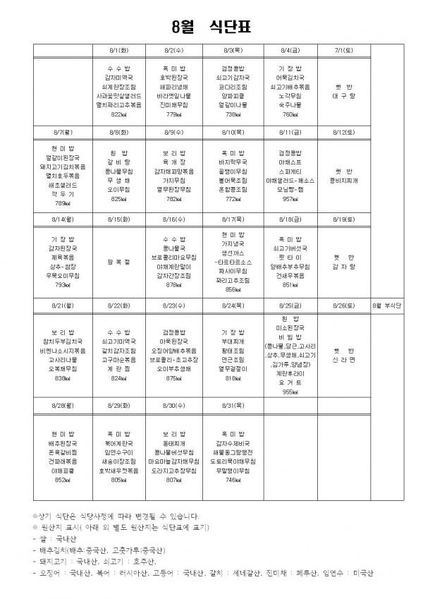 공지사항 프로그램 안내 이야기로 만나는 우리동네 영상으로 만나는 우리동네 미디어로 만나는 우리동네 사회복지사가 소개하는 우리동네 공지사항 식단표 | 8월 식단표 2017-07-31 관련링크 본문 이전글 다음글 수정 삭제 목록 2025년 하반기 2025년 상반기 2024년 하반기 2024년 상반기 2023년 하반기 X 개인정보처리방침 금천누리종합사회복지관 개인정보취급방침 금천누리종합사회복지관(이하 “복지관”이라 함)이 취급하는 모든 개인정보는 관련법령에 근거하거나 정보주체의 동의에 의하여 수집 · 보유와 처리되고 있습니다. 복지관 개인정보처리방침은 「개인정보 보호법」 에 근거를 두고 있으며, 이러한 법령의 규정에 따라 수집 · 보유와 처리하는 개인정보를 공공업무의 적절한 수행과 국민의 권익을 보호하기 위해 적법하고 적정하게 취급할 것입니다. 또한, 복지관은 관련 법령에서 규정한 바에 따라 보유하고 있는 개인정보에 대한 열람청구권과 정정청구권 등 여러분의 권익을 존중하며, 이와 관련한 고충을 신속하고 원활하게 처리할 수 있도록 하기 위하여 다음과 같이 개인정보처리방침을 수립 · 공개합니다. 제1조(개인정보의 처리목적) 복지관은 다음의 목적을 위하여 개인정보를 처리합니다. 처리하고 있는 개인정보는 다음의 목적 이외의 용도로는 이용되지 않으며, 이용목적이 변경될 경우에는 개인정보보호법 제18조에 따라 별도의 동의를 받는 등 필요한 조치를 이행할 예정입니다. 1. 자원봉사 신청 및 자원봉사자 관리 자원봉사 의사 확인, 봉사활동 실시를 위한 자원봉사자의 교육, 사회복지봉사활동인증관리시스템(VMS) 실적입력, 배치신청, 증명서 발급, 소식지 발송, 만 14세 미만 아동의 개인정보 수집 이용 시 법정대리인의 동의여부 확인, 각종 고지·통지, 고충처리, 통계자료 작성 등을 목적으로 개인정보를 처리합니다. 2. 후원 신청 및 후원자 관리 후원과 관련된 기본적인 본인 식별, 기부금 출금, 기부금영수증 발급과 국세청 연말정산간소화서비스로의 정보제공, CMS 신규/해지와 출금요청을 위한 정보제공(금융결제원), 만 14세 미만 아동의 개인정보 수집 이용 시 법정대리인의 동의여부 확인, 각종 고지·통지, 고충처리, 통계자료 작성 등을 목적으로 개인정보를 처리합니다. 3. 시설대관 및 기관방문 업무 운영과 관리 등을 목적으로 개인정보를 처리합니다. 제2조(개인정보의 처리와 보유기간) ① 복지관 법령에 따른 개인정보 보유 · 이용기간 또는 정보주체로부터 개인정보를 수집 시에 동의 받은 개인정보 보유 · 이용기간 내에서 개인정보를 처리 · 보유합니다. ② 통신비밀보호법 제15조의 2(전기통신사업자의 협조의무)에 따른 통신사실 확인자료 보관 - 가입자 전기통신일시, 개시 · 종료시간, 상대방 가입자번호, 사용도수, 발신기지국 위치추적자료 : 12개월 - 컴퓨터통신, 인터넷 로그기록자료, 접속지 추적자료 : 3개월 제3조(개인정보의 제3자 제공) ① 복지관은 정보주체의 개인정보를 제1조(개인정보의 처리 목적)에서 명시한 범위 내에서만 처리하며, 정보주체의 동의, 법률의 특별한 규정 등 개인정보 보호법 제17조에 해당하는 경우에만 개인정보를 제3자에게 제공합니다. ② 복지관은 정보주체로부터 개인정보를 수집 시에 동의 받은 내용 내에서 개인정보를 제3자에게 제공합니다. 제4조(정보주체의 권리 · 의무와 행사방법) ① 정보주체는 복지관에 대해 언제든지 다음 각 호의 개인정보보호 관련 권리를 행사할 수 있습니다. 1. 개인정보 열람요구 2. 오류 등이 있을 경우 정정 요구 3. 삭제요구 4. 처리정지 요구 ② 제1항에 따른 권리 행사는 복지관에 대해 서면, 전화, 전자우편, 모사전송(FAX)등을 통하여 하실 수 있으며 복지관은 이에 대해 지체 없이 조치하겠습니다. ③ 정보주체가 개인정보의 오류 등에 대한 정정 또는 삭제를 요구한 경우에는 복지관은 정정 또는 삭제를 완료할 때까지 당해 개인정보를 이용하거나 제공하지 않습니다. ④ 제1항에 따른 권리 행사는 정보주체의 법정대리인이나 위임을 받은 자 등 대리인을 통하여 하실 수 있습니다. 이 경우 개인정보 보호법 시행규칙 별지 제11호 서식에 따른 위임장을 제출하셔야 합니다. ⑤ 정보주체는 개인정보 보호법 등 관계법령을 위반하여 복지관이 처리하고 있는 정보주체 본인이나 타인의 개인정보와 사생활을 침해하여서는 아니됩니다. 제5조(처리하는 개인정보 항목) ① 복지관은 다음의 개인정보 항목을 처리하고 있습니다. * 필수정보: 이름, 생년월일, 연락처, 주소, 소속, 후원금액, 후원계좌 ② 인터넷 서비스 이용과정에서 아래 개인정보 항목이 자동으로 생성되어 수집될 수 있습니다. - IP주소, 쿠키, MAC주소, 서비스 이용기록, 방문기록, 불량 이용기록 등 제6조(개인정보의 파기) ① 복지관은 개인정보 보유기간의 경과, 처리목적 달성 등 개인정보가 불필요하게 되었을 때에는 지체 없이 해당 개인정보를 파기합니다. 제7조(개인정보의 안전성 확보조치) 복지관은 개인정보의 안전성 확보를 위해 다음과 같은 조치를 취하고 있습니다. 1. 관리적 조치 : 보안서버(SSL) 운영, 내부관리계획 수립 · 시행, 정기