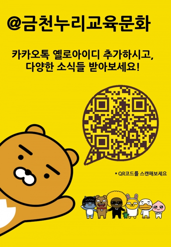 금천누리교육문화 카카오톡 옐로아이디를 개설하였습니다^^
