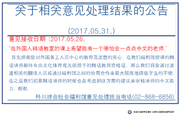 공지사항 프로그램 안내 이야기로 만나는 우리동네 영상으로 만나는 우리동네 미디어로 만나는 우리동네 사회복지사가 소개하는 우리동네 공지사항 공지사항 | 고충처리결과공지(2017.05.26) 2017-05-26 관련링크 본문 이전글 다음글 수정 삭제 목록 2025년 하반기 2025년 상반기 2024년 하반기 2024년 상반기 2023년 하반기 X 개인정보처리방침 금천누리종합사회복지관 개인정보취급방침 금천누리종합사회복지관(이하 “복지관”이라 함)이 취급하는 모든 개인정보는 관련법령에 근거하거나 정보주체의 동의에 의하여 수집 · 보유와 처리되고 있습니다. 복지관 개인정보처리방침은 「개인정보 보호법」 에 근거를 두고 있으며, 이러한 법령의 규정에 따라 수집 · 보유와 처리하는 개인정보를 공공업무의 적절한 수행과 국민의 권익을 보호하기 위해 적법하고 적정하게 취급할 것입니다. 또한, 복지관은 관련 법령에서 규정한 바에 따라 보유하고 있는 개인정보에 대한 열람청구권과 정정청구권 등 여러분의 권익을 존중하며, 이와 관련한 고충을 신속하고 원활하게 처리할 수 있도록 하기 위하여 다음과 같이 개인정보처리방침을 수립 · 공개합니다. 제1조(개인정보의 처리목적) 복지관은 다음의 목적을 위하여 개인정보를 처리합니다. 처리하고 있는 개인정보는 다음의 목적 이외의 용도로는 이용되지 않으며, 이용목적이 변경될 경우에는 개인정보보호법 제18조에 따라 별도의 동의를 받는 등 필요한 조치를 이행할 예정입니다. 1. 자원봉사 신청 및 자원봉사자 관리 자원봉사 의사 확인, 봉사활동 실시를 위한 자원봉사자의 교육, 사회복지봉사활동인증관리시스템(VMS) 실적입력, 배치신청, 증명서 발급, 소식지 발송, 만 14세 미만 아동의 개인정보 수집 이용 시 법정대리인의 동의여부 확인, 각종 고지·통지, 고충처리, 통계자료 작성 등을 목적으로 개인정보를 처리합니다. 2. 후원 신청 및 후원자 관리 후원과 관련된 기본적인 본인 식별, 기부금 출금, 기부금영수증 발급과 국세청 연말정산간소화서비스로의 정보제공, CMS 신규/해지와 출금요청을 위한 정보제공(금융결제원), 만 14세 미만 아동의 개인정보 수집 이용 시 법정대리인의 동의여부 확인, 각종 고지·통지, 고충처리, 통계자료 작성 등을 목적으로 개인정보를 처리합니다. 3. 시설대관 및 기관방문 업무 운영과 관리 등을 목적으로 개인정보를 처리합니다. 제2조(개인정보의 처리와 보유기간) ① 복지관 법령에 따른 개인정보 보유 · 이용기간 또는 정보주체로부터 개인정보를 수집 시에 동의 받은 개인정보 보유 · 이용기간 내에서 개인정보를 처리 · 보유합니다. ② 통신비밀보호법 제15조의 2(전기통신사업자의 협조의무)에 따른 통신사실 확인자료 보관 - 가입자 전기통신일시, 개시 · 종료시간, 상대방 가입자번호, 사용도수, 발신기지국 위치추적자료 : 12개월 - 컴퓨터통신, 인터넷 로그기록자료, 접속지 추적자료 : 3개월 제3조(개인정보의 제3자 제공) ① 복지관은 정보주체의 개인정보를 제1조(개인정보의 처리 목적)에서 명시한 범위 내에서만 처리하며, 정보주체의 동의, 법률의 특별한 규정 등 개인정보 보호법 제17조에 해당하는 경우에만 개인정보를 제3자에게 제공합니다. ② 복지관은 정보주체로부터 개인정보를 수집 시에 동의 받은 내용 내에서 개인정보를 제3자에게 제공합니다. 제4조(정보주체의 권리 · 의무와 행사방법) ① 정보주체는 복지관에 대해 언제든지 다음 각 호의 개인정보보호 관련 권리를 행사할 수 있습니다. 1. 개인정보 열람요구 2. 오류 등이 있을 경우 정정 요구 3. 삭제요구 4. 처리정지 요구 ② 제1항에 따른 권리 행사는 복지관에 대해 서면, 전화, 전자우편, 모사전송(FAX)등을 통하여 하실 수 있으며 복지관은 이에 대해 지체 없이 조치하겠습니다. ③ 정보주체가 개인정보의 오류 등에 대한 정정 또는 삭제를 요구한 경우에는 복지관은 정정 또는 삭제를 완료할 때까지 당해 개인정보를 이용하거나 제공하지 않습니다. ④ 제1항에 따른 권리 행사는 정보주체의 법정대리인이나 위임을 받은 자 등 대리인을 통하여 하실 수 있습니다. 이 경우 개인정보 보호법 시행규칙 별지 제11호 서식에 따른 위임장을 제출하셔야 합니다. ⑤ 정보주체는 개인정보 보호법 등 관계법령을 위반하여 복지관이 처리하고 있는 정보주체 본인이나 타인의 개인정보와 사생활을 침해하여서는 아니됩니다. 제5조(처리하는 개인정보 항목) ① 복지관은 다음의 개인정보 항목을 처리하고 있습니다. * 필수정보: 이름, 생년월일, 연락처, 주소, 소속, 후원금액, 후원계좌 ② 인터넷 서비스 이용과정에서 아래 개인정보 항목이 자동으로 생성되어 수집될 수 있습니다. - IP주소, 쿠키, MAC주소, 서비스 이용기록, 방문기록, 불량 이용기록 등 제6조(개인정보의 파기) ① 복지관은 개인정보 보유기간의 경과, 처리목적 달성 등 개인정보가 불필요하게 되었을 때에는 지체 없이 해당 개인정보를 파기합니다. 제7조(개인정보의 안전성 확보조치) 복지관은 개인정보의 안전성 확보를 위해 다음과 같은 조치를 취하고 있습니다. 1. 관리적 조치 : 보안서버(SSL) 운영, 내부관리계획
