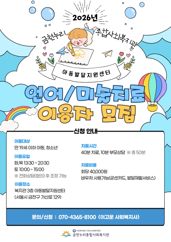 2026년 아동발달지원센터 언어,미술치료 이용자 모집