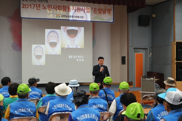 2017년 노인사회활동지원사업 활동교육 진행 작성자이다희 조회2,279 작성일17-06-20 관련링크 본문 금천누리종합사회복지관에서는 노인사회활동지원사업 참여자 어르신을 대상으로 "좋은 스트레스, 나쁜 스트레스" 라는 주제의 활동교육을 진행하였습니다. 스트레스에 대한 이해와 함께 스트레스를 푸는 체조, 노래도 하시며 즐거운 시간을 보내셨는데요. 사업에 참여하시며 받으셨던 스트레스 한번에 날리는 활동교육이 되셨길 바랍니다. 이전글 다음글 목록