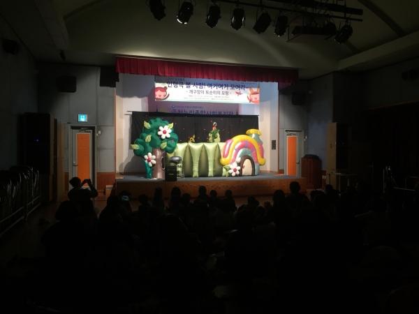 2017년 지역주민 문화공연<인형극> 작성자관리자 조회1,921 작성일17-11-27 관련링크 본문 금천누리종합사회복지관에서는 지역아동을 위한 문화공연을 진행하고 있습니다. 올해는 반디 인형극단과 함께 <개구장이 토순이의 모험>이라는 인형극을 금천누리종합사회복지관 5층 강당에서 진행하였습니다. 아이들 모두 힘을 모아 토순이를 응원하며, 인형극에 집중하였습니다. 공연을 보러 온 아이들이 너무나 좋아하고 신나하는 모습이었습니다. 내년에도 좋은 공연 준비하겠습니다~! 이전글 다음글 목록
